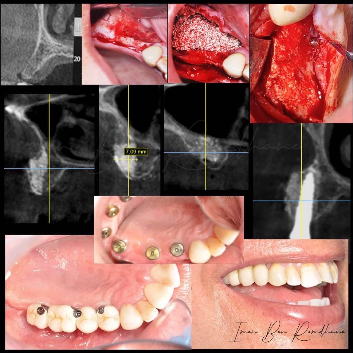 Augmentation osseuse horizontale avec la méthode dIstvan Urban sausage technique me permettant un gain horizontal de 7,09mm assurant une pose chirurgicale des implants prothétiquement guidés.