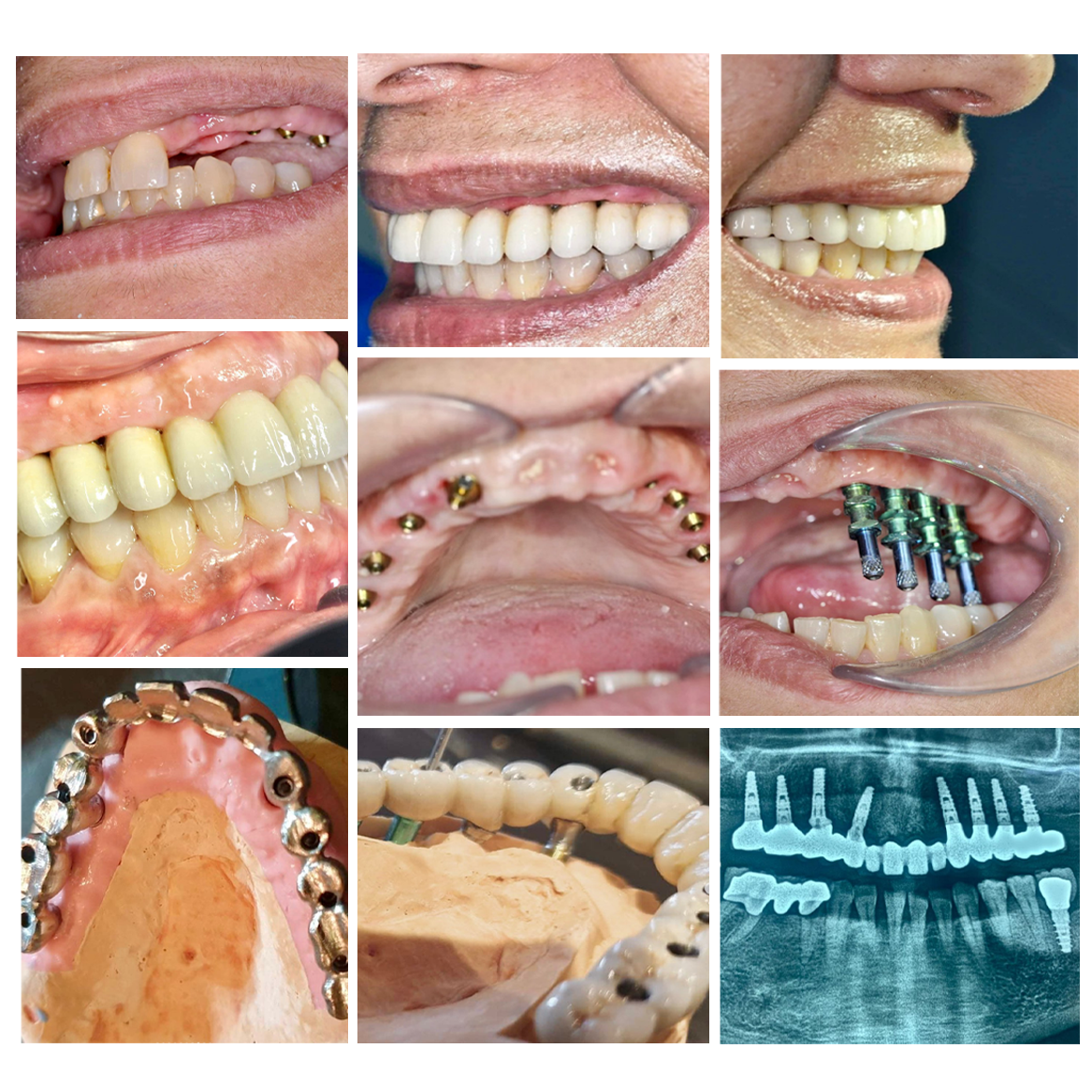 Réhabilitation totale maxillaire transvissée céramique titane sur implants intra-lock /Extraction /immédiat implant placement chirugie. Laboratoire Sandro Eric D'Anna